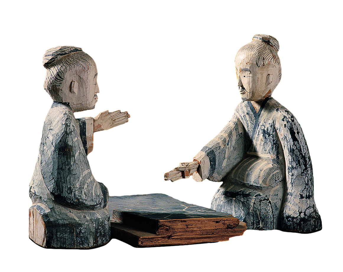 彩繪木雕博戲俑