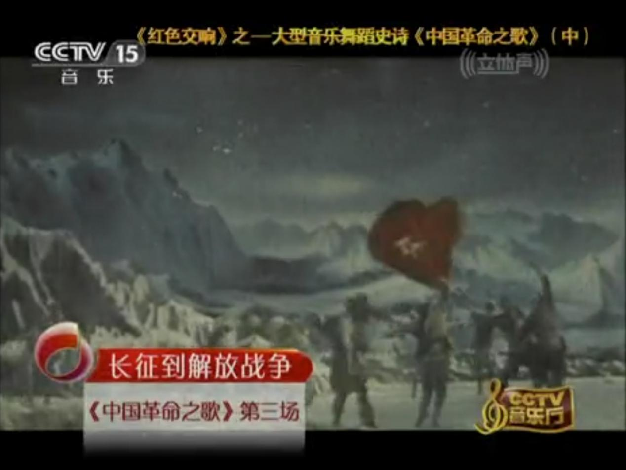 而在音樂與舞蹈的融合道路上,創(chuàng)作于1984年的大型音樂舞蹈史詩《中國革命之歌》,邁向了一種更為宏大的藝術形態(tài)。作品融舞蹈、音樂、朗誦與舞臺視覺于一體,以全景敘事回溯革命征程。其中第三時期的片段《紅軍不怕遠征難》,以“雪山紅星”為核心意象,在交響樂、合唱與舞蹈的交織中,唱響了那段艱苦卓絕的歷程。