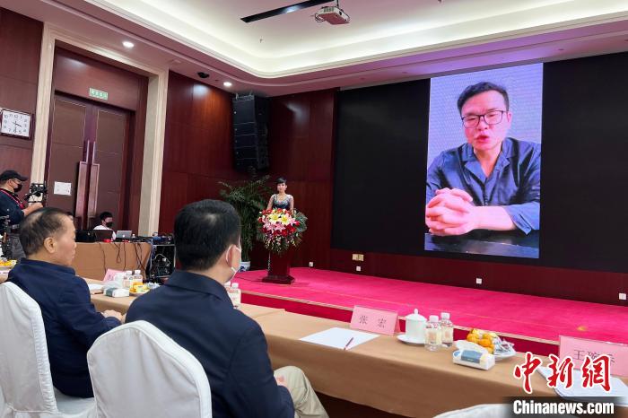 唐帥通過(guò)在線視頻發(fā)言?!∨诵衽R 攝