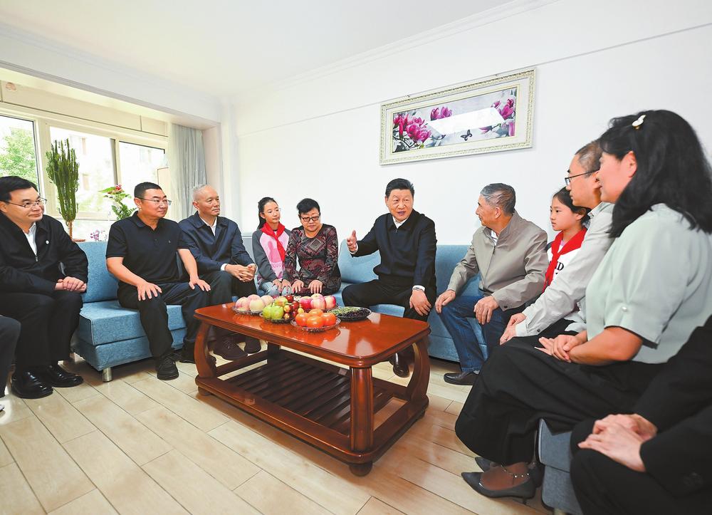 9月10日至13日,中共中央總書記、國(guó)家主席、中央軍委主席習(xí)近平在甘肅考察。這是11日下午,習(xí)近平在蘭州市安寧區(qū)棗林西社區(qū)考察時(shí),同退休老黨員李宗彪一家人圍坐在一起拉家常。新華社記者燕雁