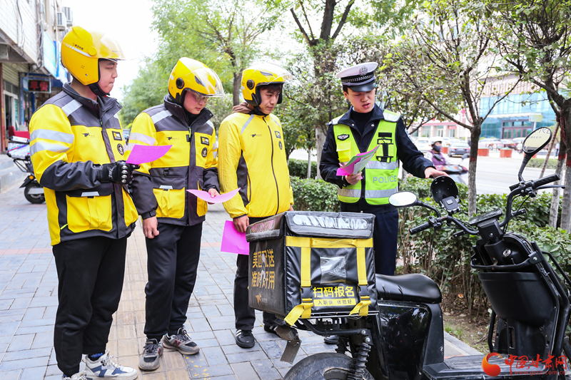 平?jīng)觯横轻冀痪癁橥赓u小哥“配送”交通安全餐