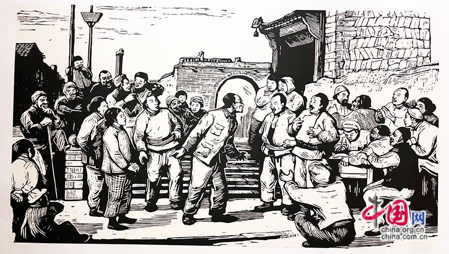 木刻版畫《馬錫五審判方式》 中國(guó)網(wǎng)記者 唐佳蕾/攝