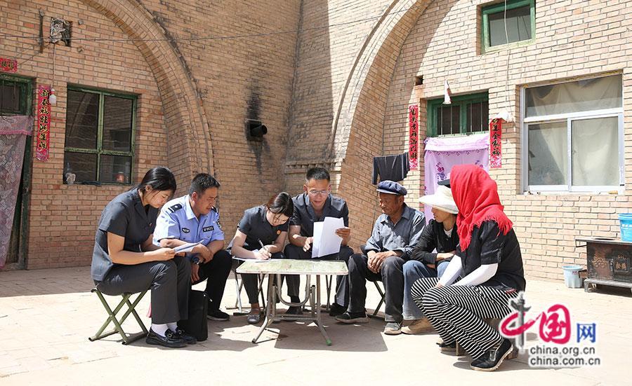 人民法庭法官走進(jìn)農(nóng)戶院落調(diào)處矛盾糾紛。中國(guó)網(wǎng)發(fā) 慶陽(yáng)市中級(jí)人民法院供圖