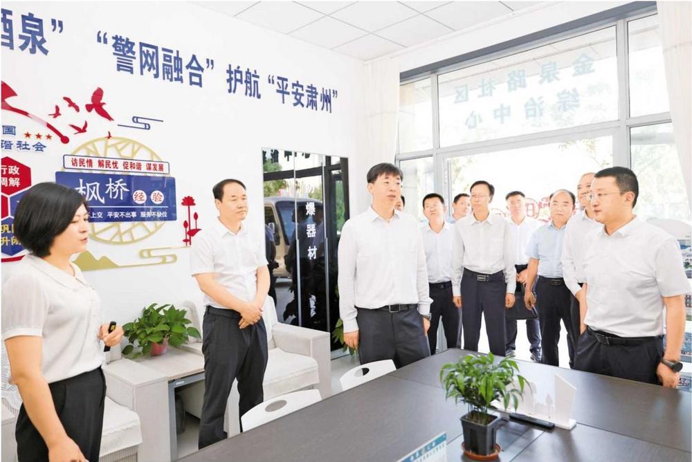 酒泉市領(lǐng)導在肅州區(qū)綜治中心調(diào)研(2025年7月9日拍攝)。