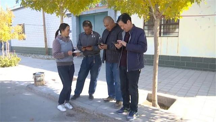 圖為酒泉市瓜州縣廣至鄉(xiāng)干部指導(dǎo)村民使用“微平臺(tái)”。