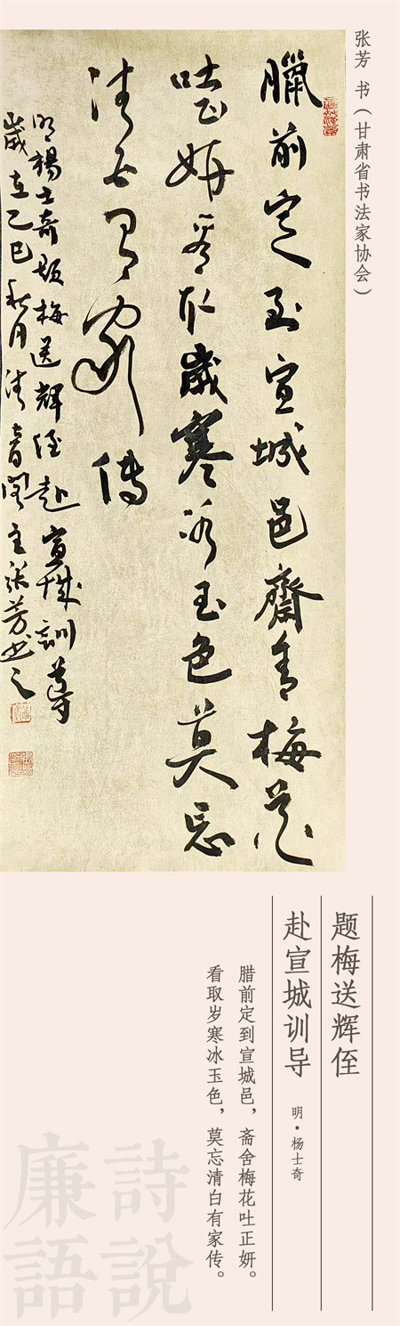 楊士奇是明初重臣,歷經(jīng)五朝,任職四十余年,長(zhǎng)期擔(dān)任內(nèi)閣首輔,位極人臣,聲望卓著。楊士奇做事謹(jǐn)慎,為官清廉,注重家教,以清白廉潔教育子孫,子侄輩為官者眾多,大都保持了良好的官聲和操守。他的一個(gè)堂侄楊輝初次走上仕途,要去宣城擔(dān)任儒學(xué)訓(xùn)導(dǎo),這是一個(gè)從八品的主管當(dāng)?shù)乜婆e、教育工作的小官。楊士奇很重視侄子的仕途第一步,臨行前想把家族的家風(fēng)家訓(xùn)強(qiáng)調(diào)一下,便專門畫(huà)了一幅梅花圖,并題下這首詩(shī),送給侄兒。