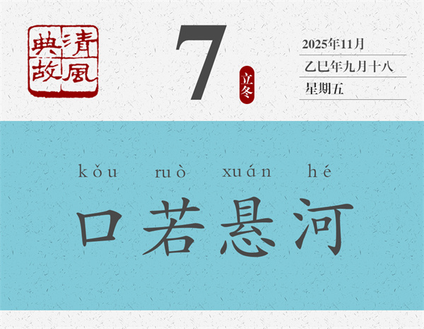《世說(shuō)新語(yǔ)》將王衍此語(yǔ)收入“賞譽(yù)”類,文字幾乎原文照抄了《晉書(shū)·郭象傳》里的話:“王太尉云:‘郭子玄語(yǔ)議如懸河寫(xiě)(同“瀉”)水,注而不絕。”王太尉即王衍,郭子玄即郭象。“如懸河瀉水”是什么意思?一,有話可說(shuō),而且有說(shuō)不完的話;二,口才非常好,凡是心里能想到的,嘴里都能說(shuō)出來(lái)。三,說(shuō)話很有氣勢(shì),不哼哼哈哈,不磨磨嘰嘰,也不“這個(gè)這個(gè)”“那個(gè)那個(gè)”地沒(méi)完沒(méi)了。后世即以“口若懸河”為典,形容一個(gè)人表達(dá)能力超群,說(shuō)起話來(lái)滔滔不絕。
