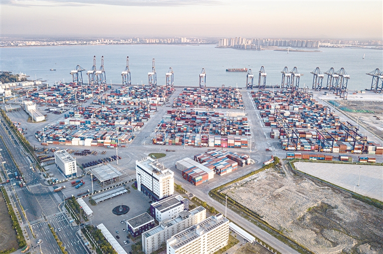 北部灣畔,海南洋浦國際集裝箱碼頭作業(yè)繁忙。這里是西部陸海新通道和21世紀(jì)海上絲綢之路的交匯點(diǎn),也是海南自貿(mào)港建設(shè)重要的國際航運(yùn)樞紐。
