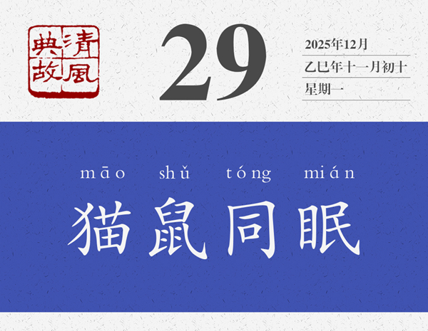 俗話說:“老鼠睡貓窩,白送一口肉。”但當貓和老鼠住在一起,同進同出的時候,情況則如另一句俗話所說:“老鼠嫁花貓,冤家變親家。”后遂以“貓鼠同眠”為典,比喻執(zhí)法者失職瀆職,包庇縱容違法犯罪者為非作歹;或形容官匪沆瀣一氣,同流合污。明人李開先傳奇《林沖寶劍記》第六出:“都是讒言佞言,一個個貓鼠同眠。”