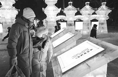 黑龍江省哈爾濱市依托冰雪文化資源創(chuàng)建廉潔品牌,打造含有清廉元素的冰雪景觀園,讓市民游客在賞冰樂(lè)雪的同時(shí)受到廉潔文化的浸潤(rùn)。圖為市民在冰雪景觀前駐足。 劉萌 攝