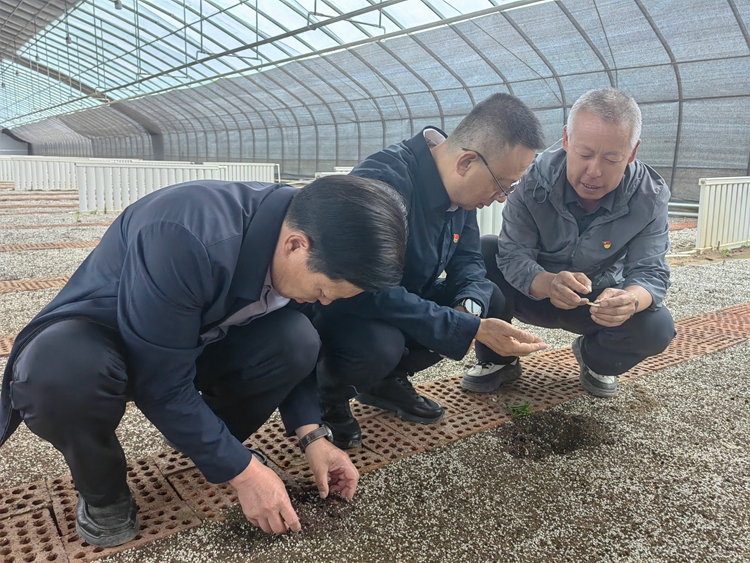 省紀(jì)委監(jiān)委派駐省農(nóng)業(yè)農(nóng)村廳紀(jì)檢監(jiān)察組工作人員深入榆中縣河灣高寒山地生態(tài)農(nóng)家示范園了解情況。