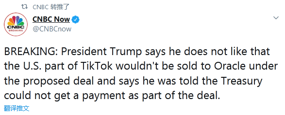 【環(huán)球網(wǎng)快訊】據(jù)CNBC剛剛消息,美國總統(tǒng)特朗普在16日的白宮新聞記者會上稱,他不喜歡目前甲骨文與TikTok目前擬定的合作協(xié)議,原因是TikTok的美國業(yè)務(wù)不會出售給甲骨文,而且他還被告知,美國財政部將無法從這次交易中拿到補償。