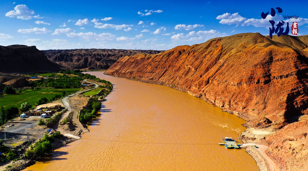 沿著黃河岸邊望去,大片綠色田園如翡翠般鑲嵌在廣袤曠野之中。阡陌縱橫間,莊稼隨風(fēng)搖曳,為蒼涼的河谷增添了一抹靈動(dòng)的柔情。遠(yuǎn)處的村落、搖曳的蘆葦、穿梭的飛鳥,與紅山碧水共同繪就了一幅層次豐富的山水畫卷。