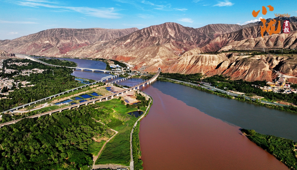 黃河蜿蜒著漫過(guò)群山褶皺,在鹽鍋峽段與湟水交匯,兩河水色涇渭分明,形成半河碧水半河濁的景觀。湟水流經(jīng)區(qū)域?qū)儆谒潦杷蓞^(qū)域,泥沙比黃河的要大一些,所以就出現(xiàn)了“黃湟交匯”的自然奇觀。