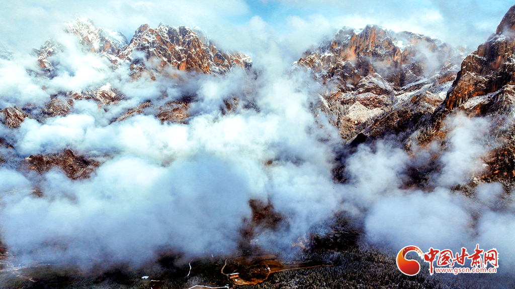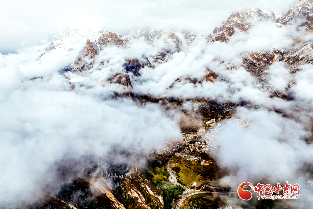 11月9日,雪后的甘南州迭部縣扎尕那景區(qū)銀裝素裹,云霧繚繞。巍峨山峰覆上新雪,古樸藏寨靜臥于皚皚雪野之間,嶙峋石林與繚繞云霧相映成趣,勾勒出一幅靜謐壯麗的高原冬日畫(huà)卷。