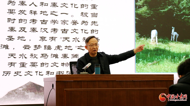 中國甘肅網(wǎng)12月12日訊(西北角·中國甘肅網(wǎng)記者 趙滿同)12月11日下午,“天水放馬灘秦簡歷史文化及書法價(jià)值探賾”專題講座在蘭州大學(xué)榆中校區(qū)舉行。天水師范大學(xué)特聘教授王振宇受邀主講,帶領(lǐng)母校蘭州大學(xué)歷史文化學(xué)院二百余名師生穿越歷史時(shí)空,深入解讀放馬灘秦簡這一秦文化瑰寶的歷史文化內(nèi)涵與書法藝術(shù)價(jià)值。