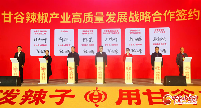 在戰(zhàn)略賦能層面,甘谷縣人民政府成功與中國農(nóng)業(yè)科學(xué)院農(nóng)產(chǎn)品加工所創(chuàng)新團(tuán)隊(duì)首席科學(xué)家張春暉、農(nóng)本咨詢規(guī)劃總監(jiān)劉進(jìn)、甘味品牌運(yùn)營管理有限公司總經(jīng)理陳晨、中國食品工業(yè)協(xié)會品牌戰(zhàn)略工作委員會副秘書長廣靜川、陜西省烹飪餐飲行業(yè)協(xié)會會長杜西鋒、甘肅省餐飲烹飪行業(yè)協(xié)會會長趙忠祿簽署戰(zhàn)略合作協(xié)議。此次簽約將為甘谷辣椒產(chǎn)業(yè)精準(zhǔn)引入頂尖科技研發(fā)力量、專業(yè)品牌運(yùn)營方案與廣闊行業(yè)資源平臺,助力構(gòu)建“科技賦能、品牌引領(lǐng)、渠道暢通”的產(chǎn)業(yè)新發(fā)展格局。