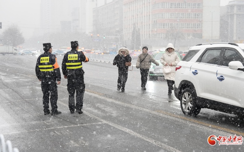 1月29日,金城蘭州迎來降雪天氣。漫天大雪中,蘭州公安民輔警們把賞雪模式切換成戰(zhàn)斗模式,迎著風(fēng)雪出發(fā)在崗位上“浴雪奮戰(zhàn)”。民輔警們清理積雪、疏導(dǎo)交通、幫助群眾,讓大家少一點(diǎn)阻礙、多一份安全。