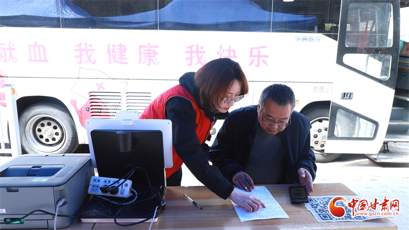 武山縣廣大干部職工登上獻血車,以一腔熱血傳遞愛心