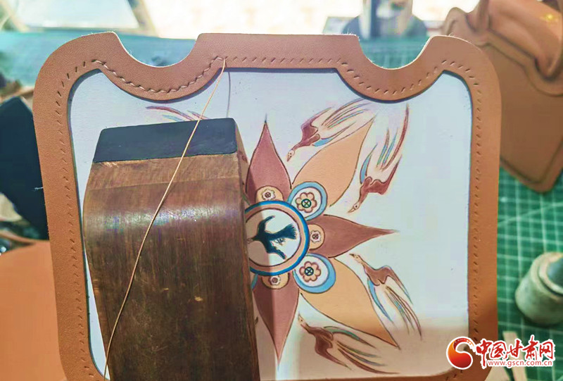日復(fù)一日與刻刀、皮革相伴,創(chuàng)作靈感的找尋曾是困擾高重民新品開發(fā)的主要問題,但他從未有過放棄的念頭,因?yàn)楦拭C深厚的文化底蘊(yùn),為他提供了取之不盡、用之不竭的創(chuàng)作源泉。“馬家窯元素、敦煌元素就在身邊,這些優(yōu)秀的文化符號,總能讓我找到新的創(chuàng)作方向。”