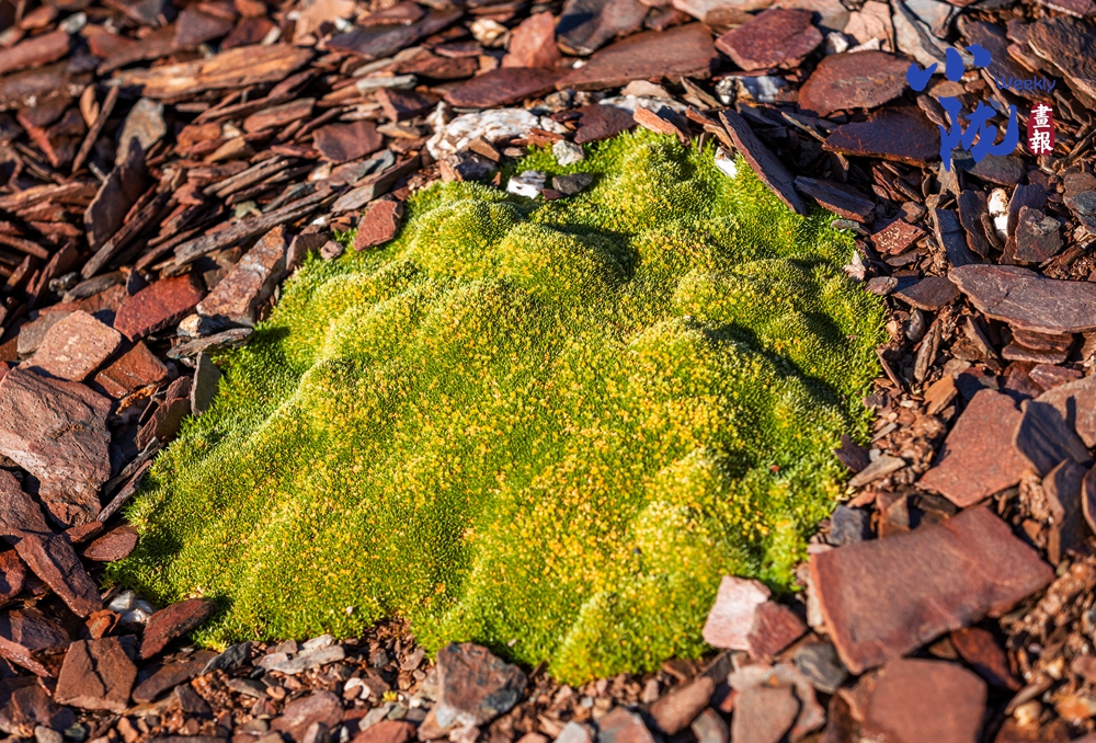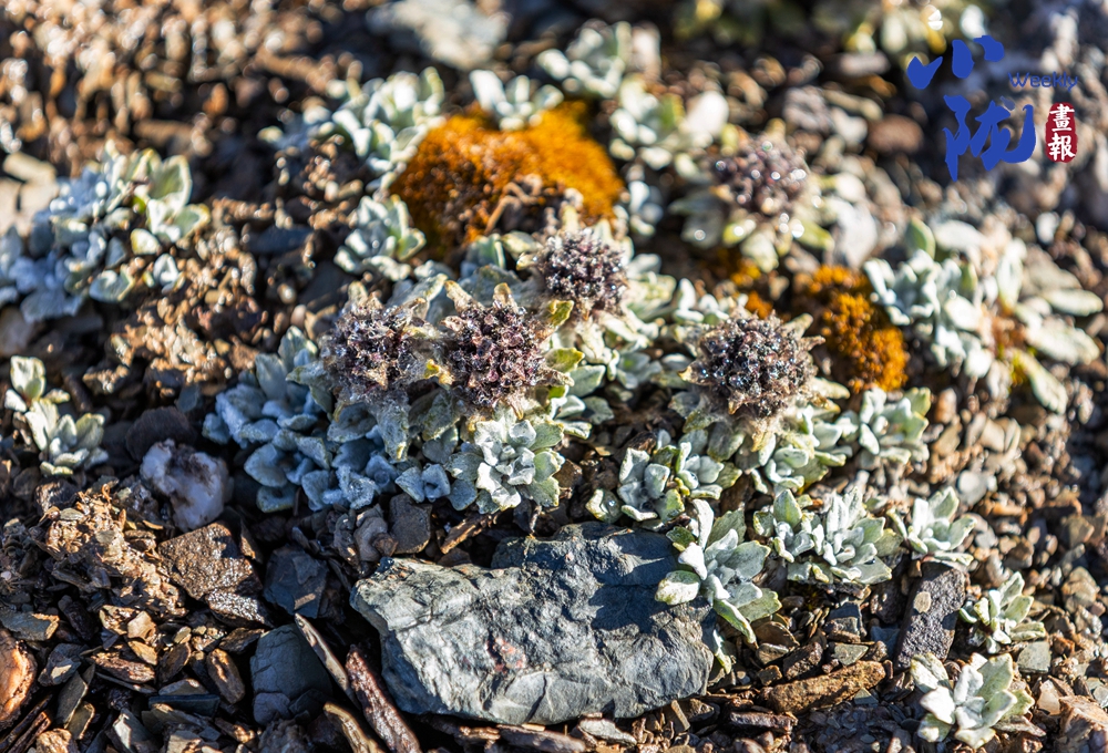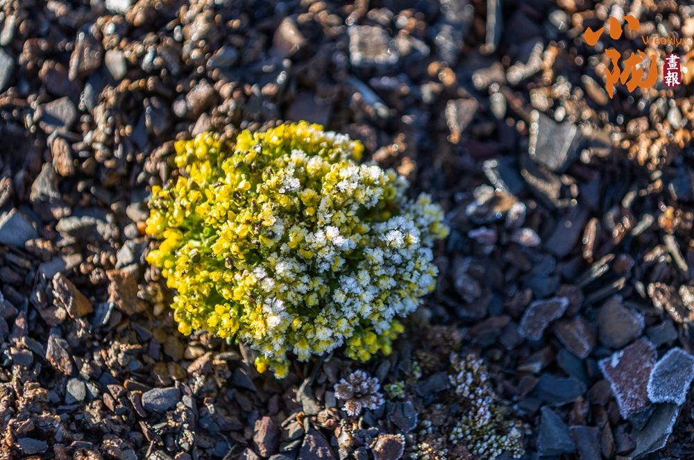 抱莖葶藶,屬于十字花科葶藶屬的墊狀高山植物。它呈緊湊的團(tuán)塊狀,葉片密集,表面覆有白色絨毛,頂端開有細(xì)碎的黃色小花,生長(zhǎng)在碎石環(huán)境中,這種形態(tài)能幫助它適應(yīng)高海拔的低溫、強(qiáng)風(fēng)與強(qiáng)紫外線環(huán)境,減少水分流失。