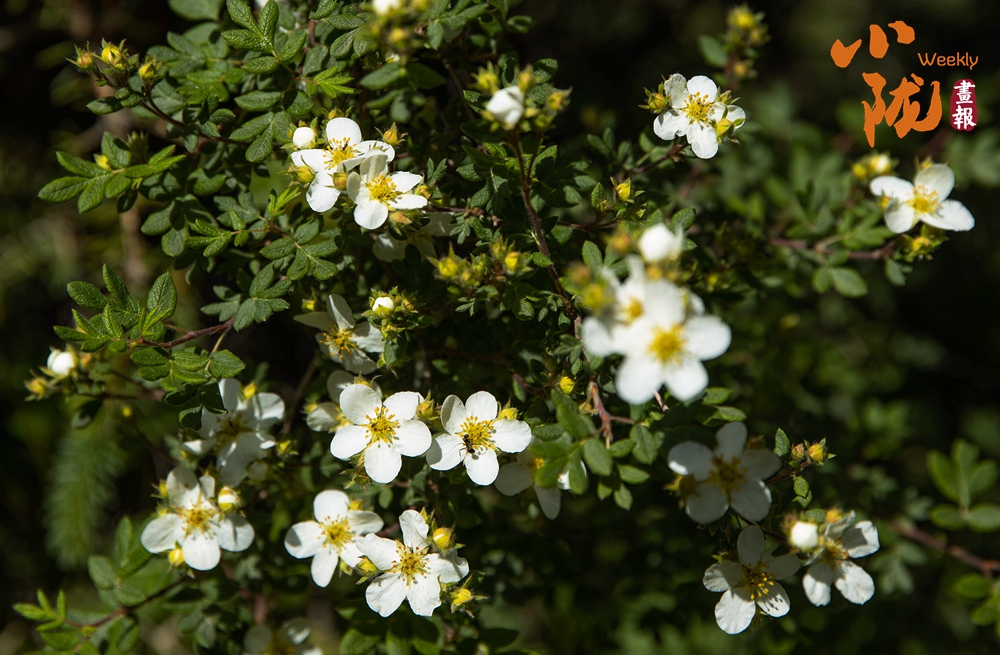 銀露梅,屬于薔薇科委陵菜屬落葉灌木。它多生長(zhǎng)在高海拔的山坡、巖石縫中,葉片羽狀分裂,邊緣帶鋸齒,白色小花簇?fù)黹_放,花蕊明黃,花期在5-7月,耐寒耐旱,是頗具觀賞價(jià)值的野生植物。