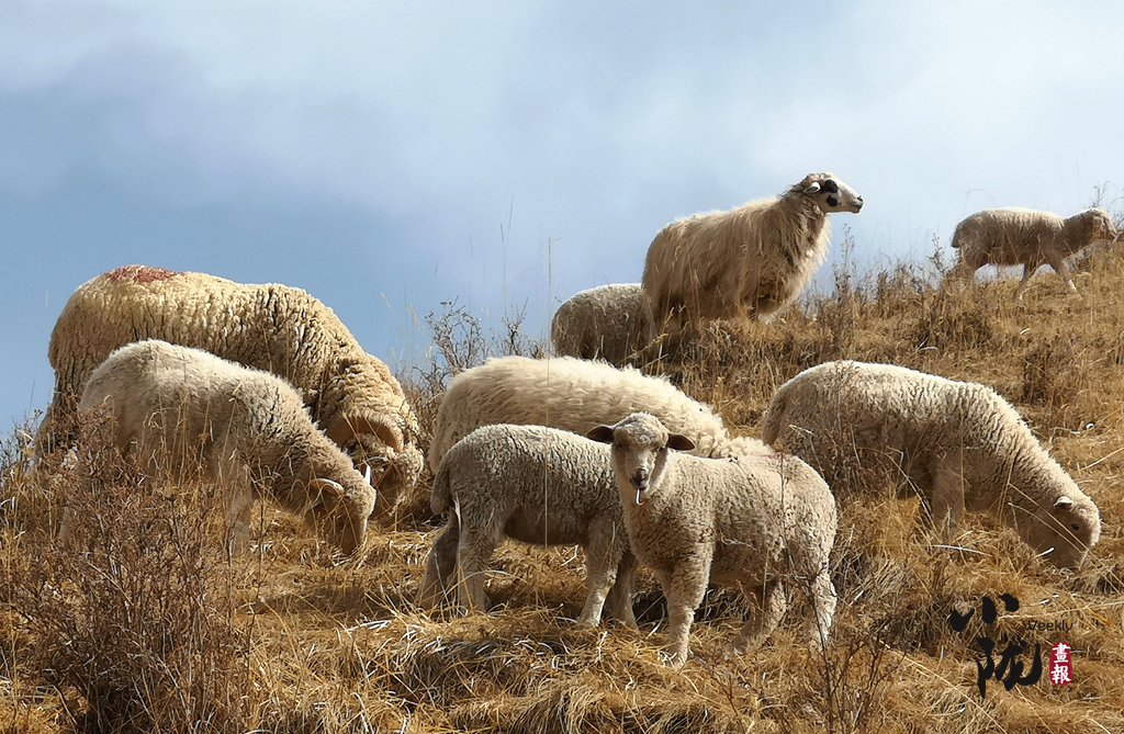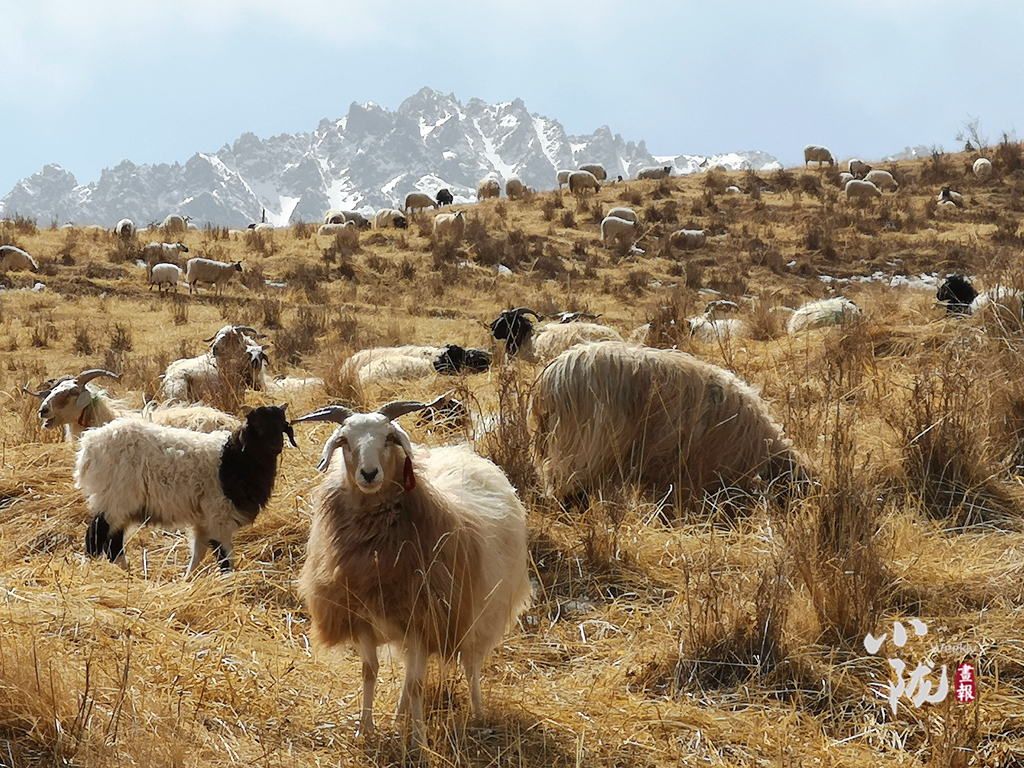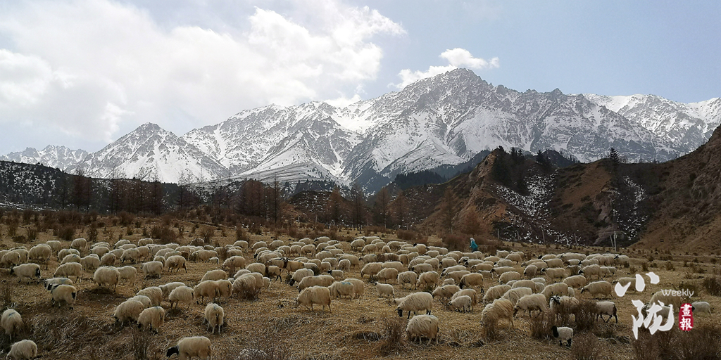春日,祁連山山腳下羊群在悠然覓食,儼然一幅祥和靜謐的生態(tài)畫(huà)卷。