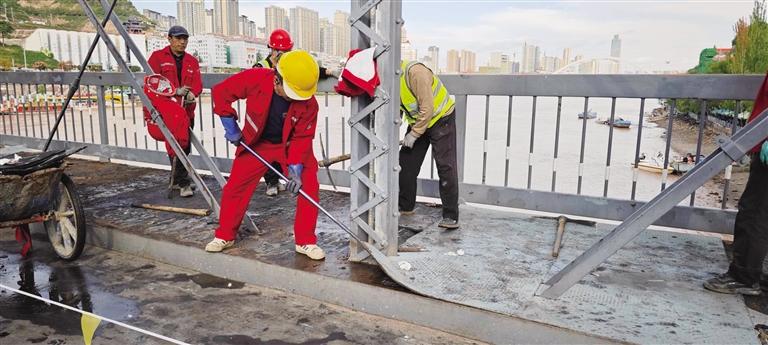 中國甘肅網(wǎng)10月13日訊 據(jù)蘭州晚報報道 為提升城市基礎設施品質(zhì),保障市民游客通行安全,蘭州市市政工程服務中心于10月11日正式啟動中山橋人行道橡膠板更換工程。