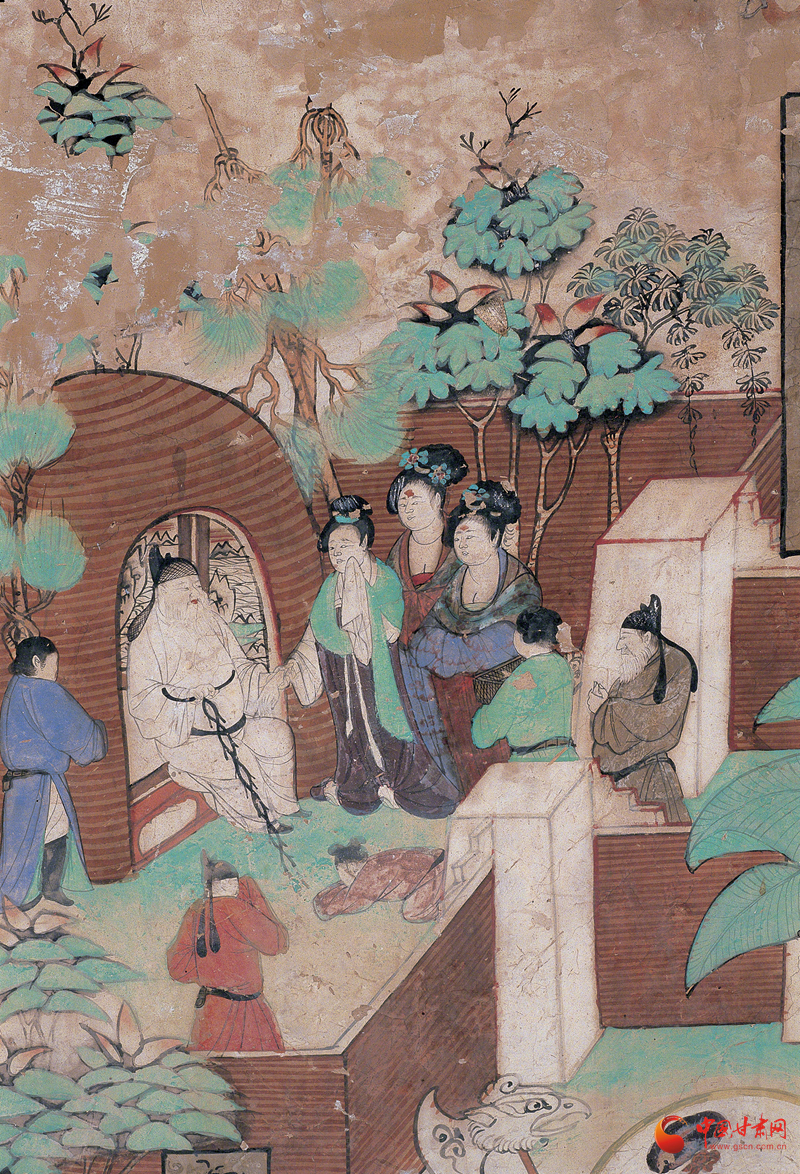 壁畫中的人情味同樣令人動容。親屬送別的不舍與墓內(nèi)老者的平靜形成鮮明對比,既尊重宗教信仰中對死亡的超脫,又不回避人間情感的自然流露。這種“悲而不傷”的處理,體現(xiàn)了中國古代藝術(shù)對生死議題的獨特理解。