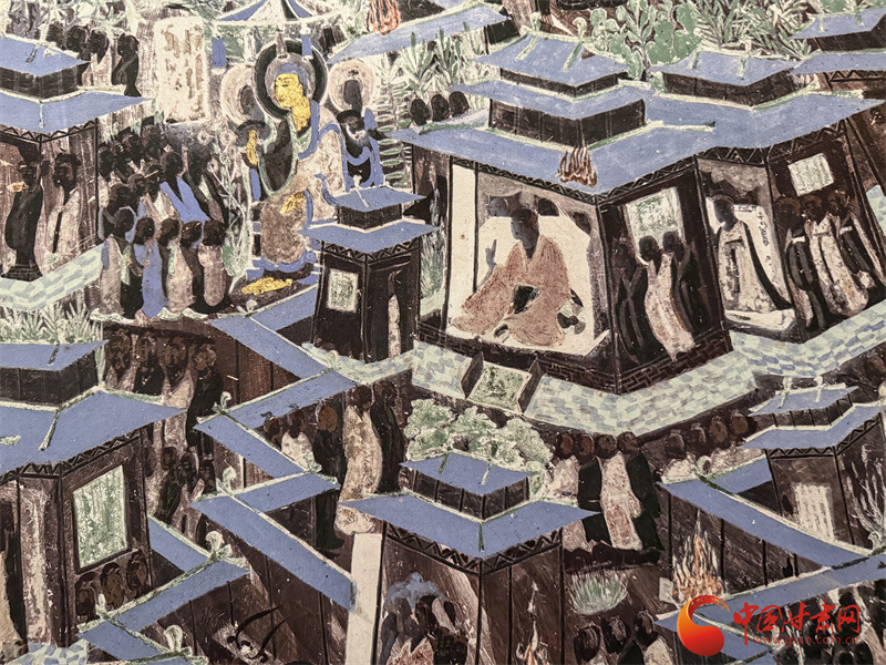 敦煌石窟遺存著公元4-14世紀(jì)一千年間的歷代壁畫(huà),總面積達(dá)4.5萬(wàn)多平方米。在這些規(guī)模宏大、內(nèi)容豐富的壁畫(huà)里,建筑常作為經(jīng)變畫(huà)與故事畫(huà)的背景存在:從巍峨肅穆的寺觀塔廟,到精巧雅致的亭臺(tái)園林,從彰顯禮制的皇宮祠堂,到充滿生活氣息的民間居所,跨越千年的建筑形象在此鮮活留存,為原本史料相對(duì)薄弱的建筑史段落,提供了直觀的視覺(jué)參照。