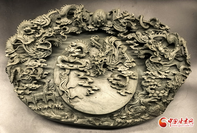 學(xué)成歸來(lái)后,徐哲將南北方工藝精髓融入洮硯創(chuàng)作:雕刻手法從鏤空、半鏤空轉(zhuǎn)向浮雕,讓洮硯既有精細(xì)雕工又方便存放;題材上,除傳統(tǒng)龍鳳外,加入敦煌飛天、黃河風(fēng)情等地域文化元素,賦予洮硯更多文化內(nèi)涵。