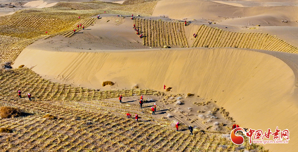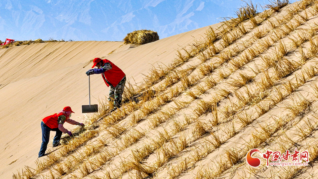 據(jù)了解,明花鄉(xiāng)地處巴丹吉林沙漠邊緣,沙化戈壁面積超過40萬畝,是國家“三北”防護(hù)林體系建設(shè)和北方防沙帶的關(guān)鍵區(qū)域。多年來,當(dāng)?shù)厝罕姵掷m(xù)開展防沙治沙,與危害生態(tài)的“黃龍”展開了一場“人進(jìn)沙退”的持久戰(zhàn)。時(shí)下,3.27萬畝“草方格沙障+高立式PE網(wǎng)沙障”沙化土地治理項(xiàng)目正緊鑼密鼓地推進(jìn)實(shí)施。