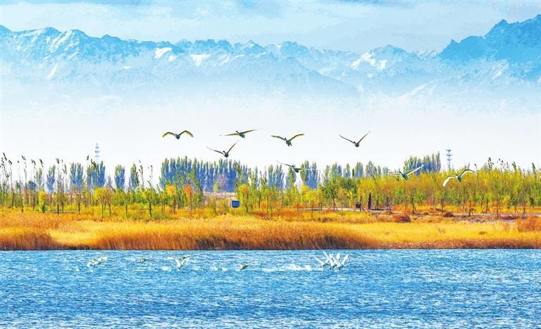 現(xiàn)在一到春天,嘉峪關(guān)市就會(huì)迎來一大批特殊的“訪客”——遺鷗、紅嘴鷗、漁鷗成群結(jié)隊(duì),或翱翔于湛藍(lán)天空,或嬉戲于碧波之上。游客、市民爭(zhēng)相前往觀賞千鳥齊翔的震撼場(chǎng)景,一幅人與自然和諧相處的美好畫卷躍然眼前。