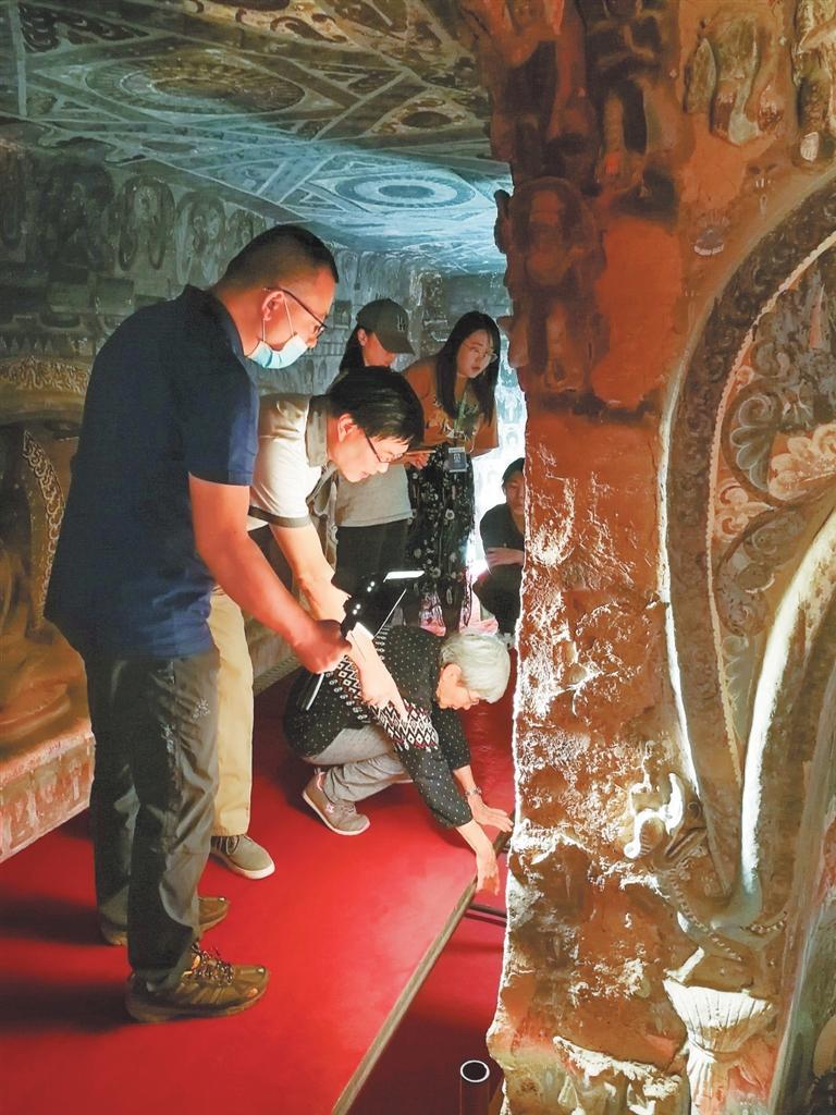 考古報告此前多年難以出爐還與技術(shù)條件不成熟有關(guān)。“最早的時候,我們誰見過電腦呀,繪圖用的是‘小平板’,測量用的是垂球、三角板。測量的人爬上爬下,繪圖的人說往左往右……又慢又不準(zhǔn)。洞窟不像我們住的房子那么四四方方,洞窟里不是壁畫就是塑像,又不能搬動,測量先就是個大難題。”直到近些年,三維激光掃描測量儀器問世、高精度數(shù)據(jù)采集、數(shù)字?jǐn)z影、用電腦軟件精確繪圖等技術(shù)成熟,才使全面、高效、非接觸地獲取洞窟三維數(shù)據(jù)、高清圖像并進(jìn)行虛擬拼合與重建成為可能。