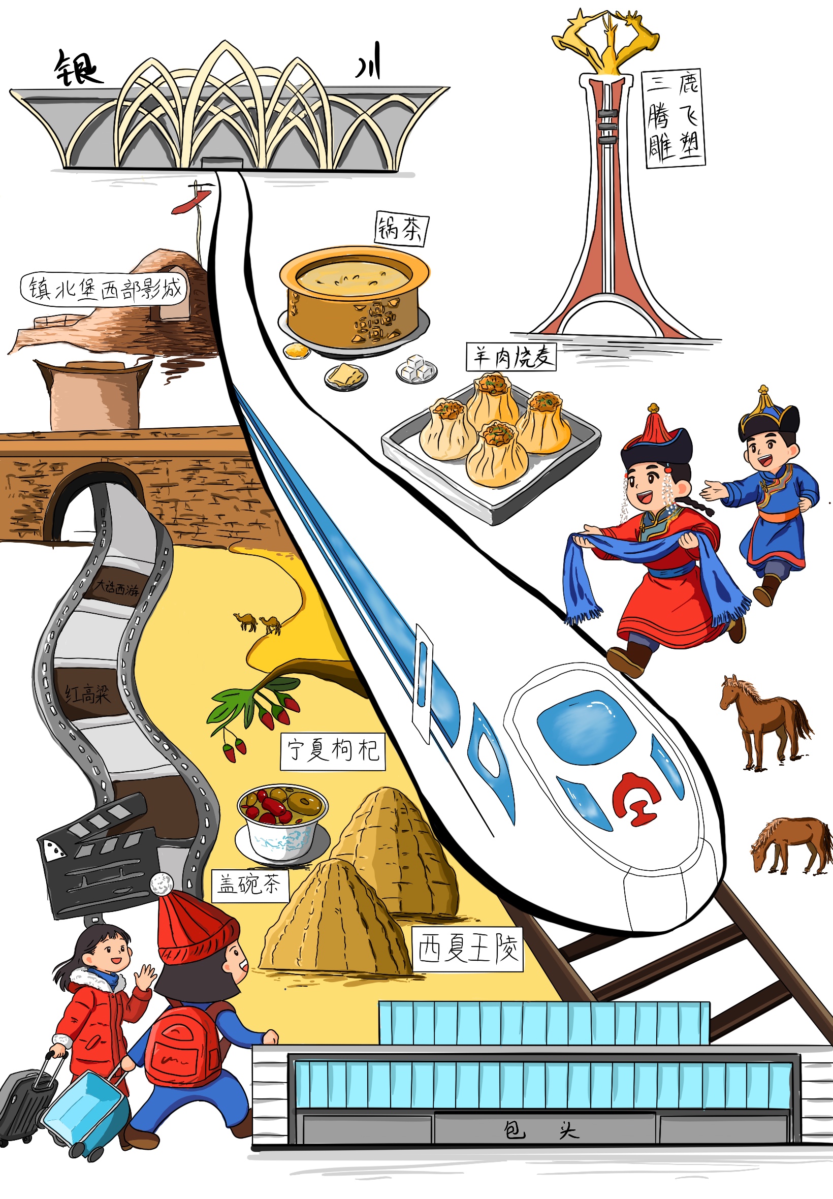 不負(fù)山河浩蕩,不負(fù)星河燦爛。這條貫穿西北的鋼鐵巨龍,不僅是一條便民出行的快捷線,更是助力發(fā)展的經(jīng)濟(jì)線、促進(jìn)交流的文化線。無(wú)論是由此帶來(lái)的沿線旅游、產(chǎn)業(yè)、就業(yè)的發(fā)展,還是鐵路企業(yè)自身建設(shè),都將呈現(xiàn)出勃勃生機(jī),為西北大地帶來(lái)更多的發(fā)展活力與無(wú)限可能。面向“十五五”,包銀高鐵必將推動(dòng)沿線經(jīng)濟(jì)社會(huì)發(fā)展駛?cè)?ldquo;快車道”,在新征程上續(xù)寫更輝煌的篇章。(文字:陳浩媛  漫畫:李雨晴,朱雪菲)