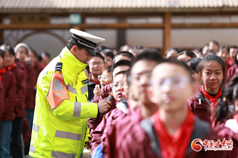 2月25日,蘭州市中小學(xué)開學(xué),學(xué)生們走進(jìn)校園,開始新學(xué)期學(xué)習(xí)生活,蘭州市公安局交管支隊(duì)城關(guān)大隊(duì)輔警在城關(guān)區(qū)水車園小學(xué)民勤街分校,為學(xué)生們講解交通安全知識(shí)。