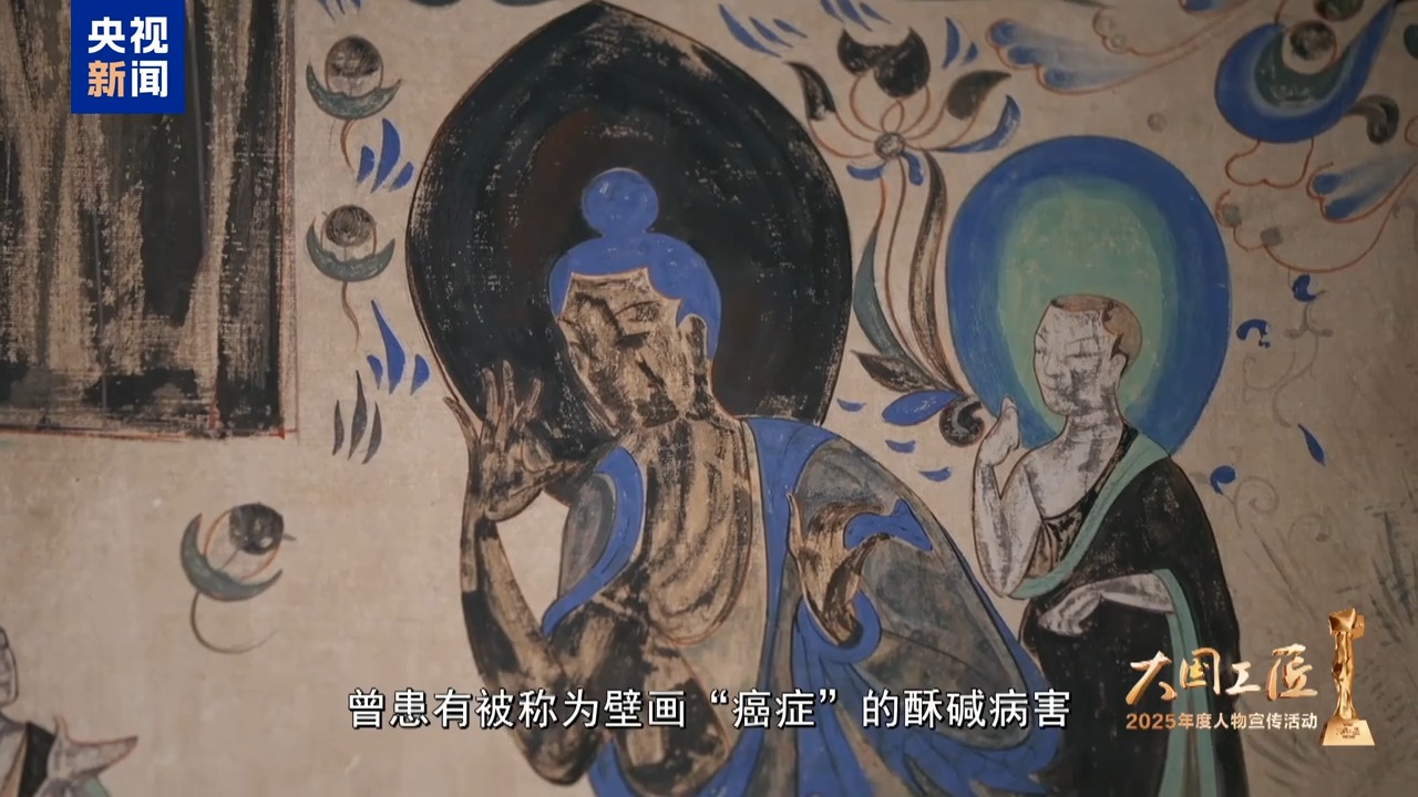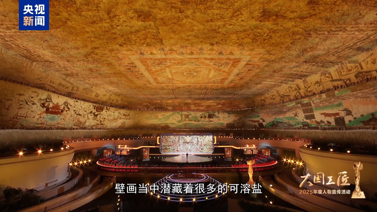 2025年大國工匠年度人物、敦煌研究院壁畫保護修復專家 樊再軒:這里,是我守護一生的地方——敦煌莫高窟,它是大漠深處矗立千年的文明圣殿。45年前,我開始修復敦煌壁畫,總感覺是在和古代的畫工們進行著跨越時空的交流。這些壁畫,它是會呼吸的,它是有生命的。然而,壁畫當中潛藏著很多的可溶鹽,在洞窟里受到溫濕度的影響,反復地潮解、結(jié)晶,導致壁畫膨脹、收縮。就像一雙雙無形的手,在一點一點撕裂著壁畫的肌膚,這就是壁畫“癌癥”。我暗下決心:要讓這千年瑰寶在時光的長河里留存得久一點,更久一點。