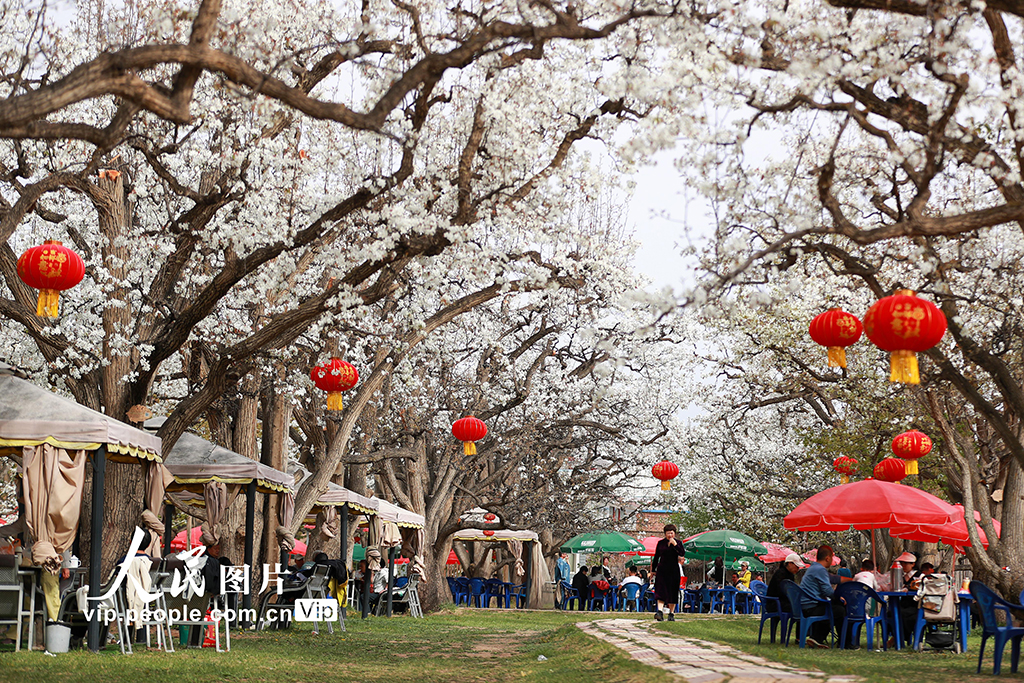 2026年4月11日,甘肅蘭州皋蘭縣什川古鎮(zhèn)萬畝百年古梨園梨花競相綻放,吸引不少市民游客踏青游園、露營休憩,盡享春光。